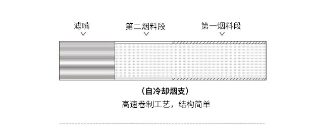 ELIO自冷却烟支突破了某跨国烟草集团在烟支烟气冷却环节上的技术垄断,将烟料划分为第一烟料段和第二烟料段,并通过加热位置划分烟料,加热器只加热第一烟料段,产生的高温气溶胶进入下游的第二烟料段,对第二烟料段间接加热,可以使第二烟料段受热产生气溶胶的同时使第一烟料段产生的气溶胶降温。