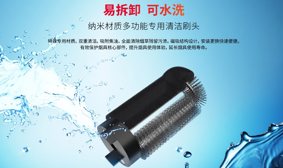 清洁器核心电机和两种高清洁效率刷毛搭配结构,一种刷毛摩擦清除死角,一种刷毛吸附粉尘和焦油,通过电机驱动旋转完成高速清洁目的。